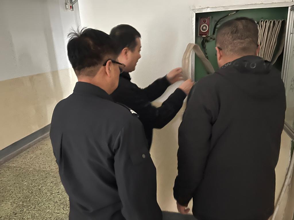 检查开始前,张朴处长对安全大检查工作进行详细部署,随后安保科科长蔺卫强、消防科副科长吴楠和驻校民警吴警官带队前往实训楼、餐厅、综合教学楼,图书馆及地下车库等区域进行全面排查,重点对消防安全责任制度与防火巡查的制度是否落实到位;疏散通道、安全出口是否畅通;疏散指示标志、应急照明灯、防火门配置是否符合要求;消火栓、灭火器等消防器材是否完好有效等情况进行了全面检查。检查结束后,保卫处第一时间为实训楼所有室内消火栓更换了消防水带,在部分区域增加灭火器,并就检查中发现的安全隐患与相关部门人员现场进行沟通,对能立即整改到位的安全问题责令立即整改,排除安全隐患,对不能立即整改到位的安全问题,要求相关部门明确责任人,限期整改到位,务必及时肃清消防隐患点。