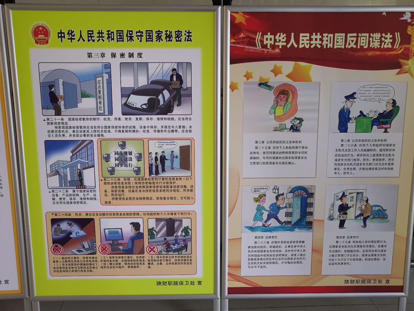 4月15日,是国家安全法颁布实施以来的第三个全民国家安全教育日。陕西财经职业技术学院为提升全院师生的国家安全意识,开展了国家安全教育日主题宣传活动。主要采取了校园网、橱窗、微信、展板及主题班会等方式进行,收到了良好效果。